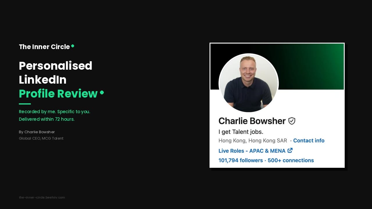 I record a personalised Loom video reviewing your LinkedIn profile. Everyone who upgrades to our Premium Tier gets one.